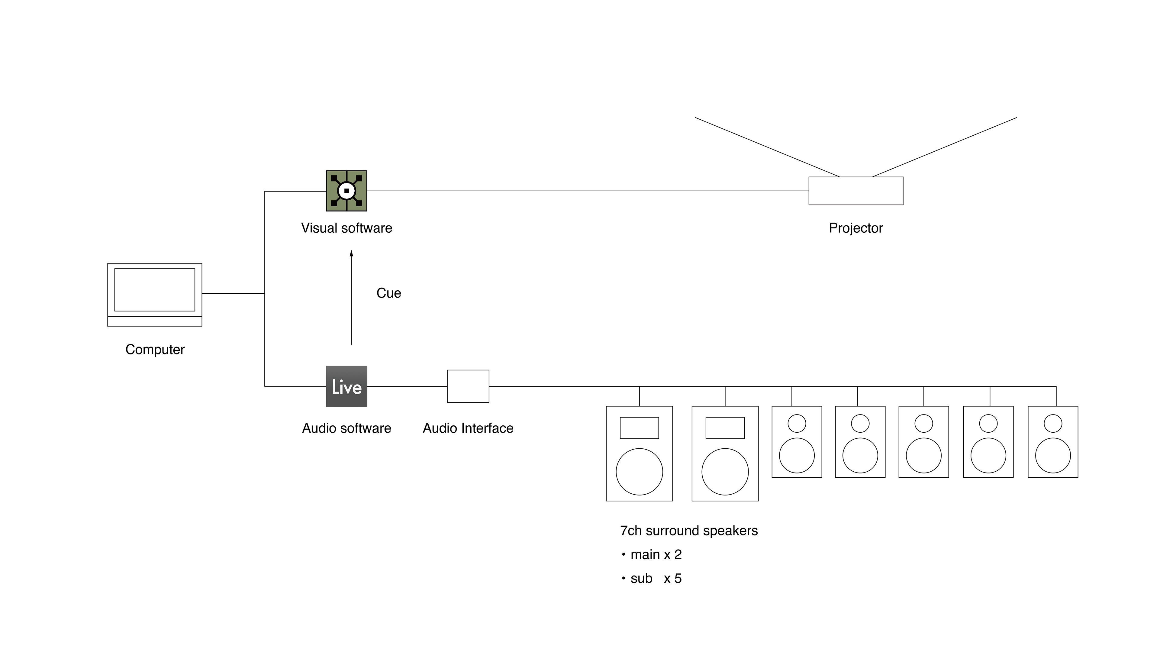 展示では音響は Abelton で再生し、映像は Abelton から送った cue をもとに再生した。